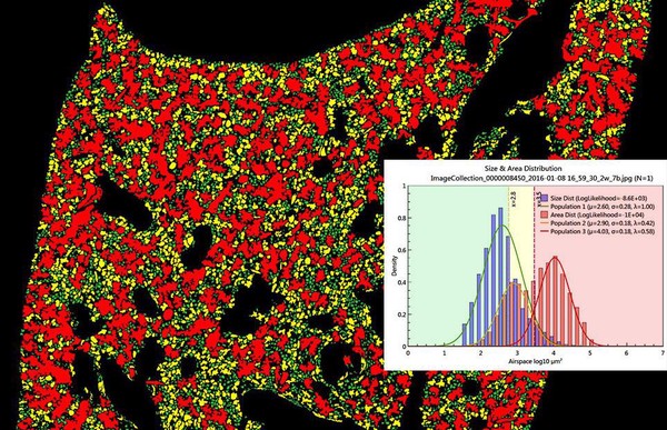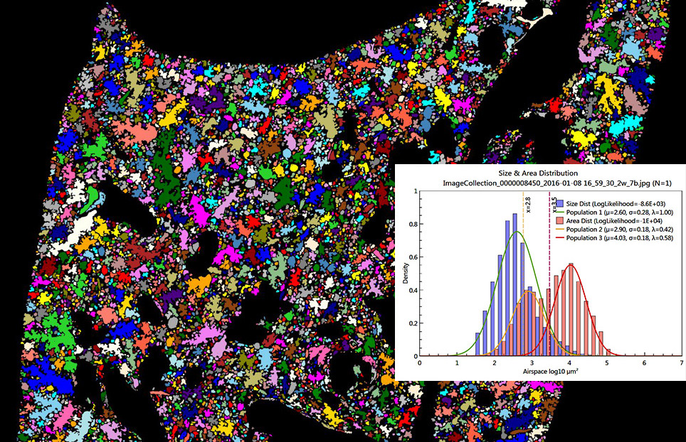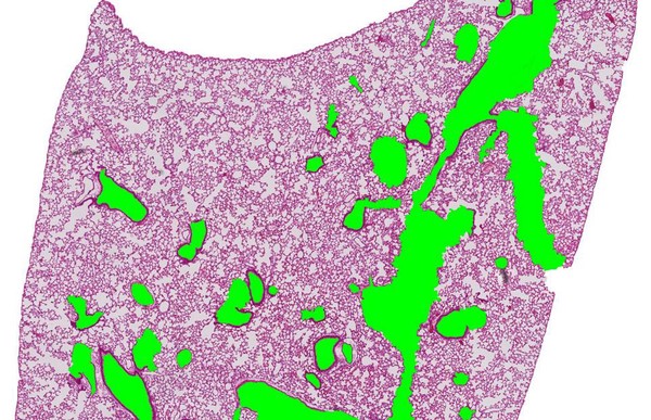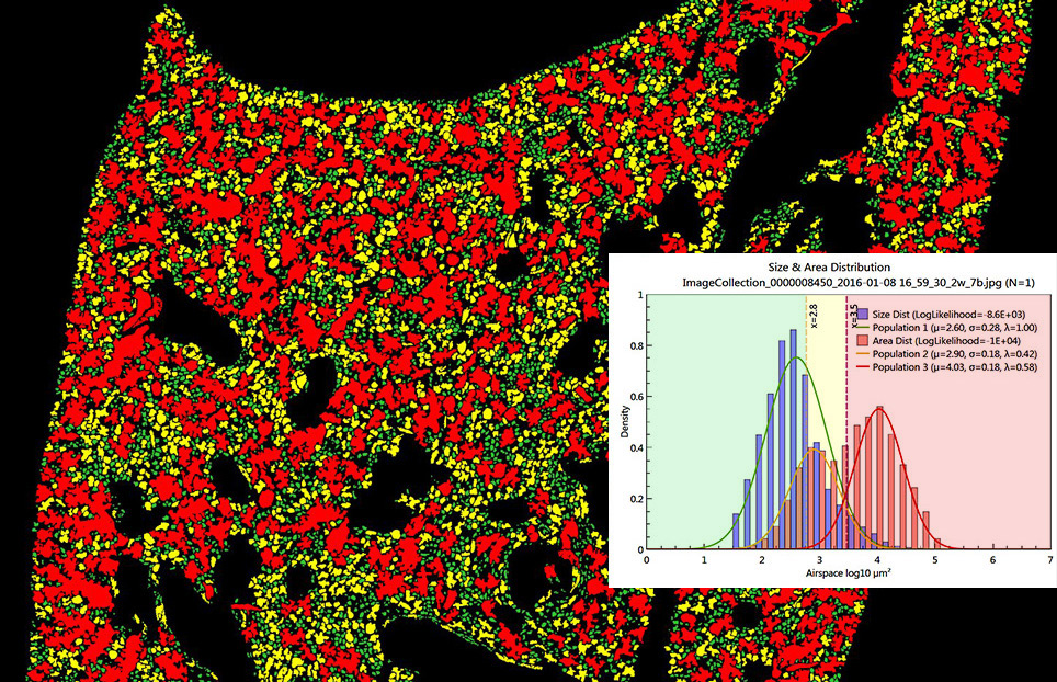 - Tissue Fraction (TF) and Ductal/Destructive to Alveolar Ratio (D2A = DF/AF) have been added to the data report. TF is particularly helpful to detect scarring tissue and changes in alveolar wall thickness. Since various reasons, including those mentioned above and thickness of each section, can affect tissue fraction, D2A (Ductal/Destructive to Alveolar Ratio, DF/AF) was introduced to make comparisons only between different categories of airspaces, other than the tissue. The D2A parameter has been tested and found to be more sensitive and robust in detecting mild emphysema, compared to DF.